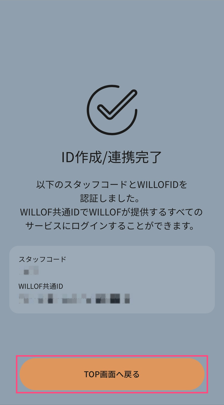 登録が完了しましたら以下の画面となりますので、「ログインへ戻る」を選択しログイン画面へ移動してください。